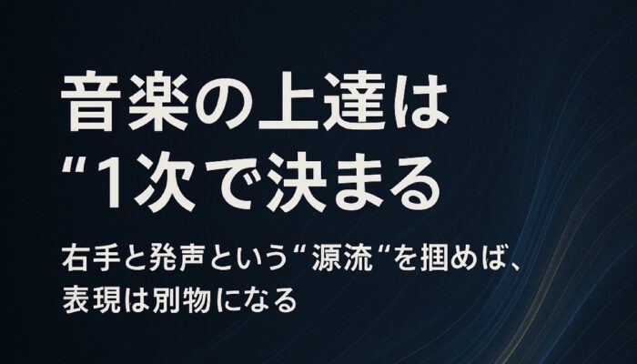 おはよう。今日は、音楽の話をしたい。ギターでも歌でも、上達を決めるのはテクニックじゃない。“1次の要素”をどう扱うか だ。ギターなら右手。歌なら発声と響き。この1次が整うと、音楽は一気に変わ