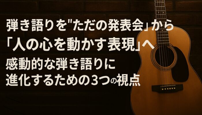 おはよう。今日も秋晴れ。今日は、弾き語りを“ただの発表会的な演奏”から“人の心を動かす表現”へ変えるための、大切な話をしたい。これはギターでもピアノでも共通する、弾き語りの“大きな壁の乗り越え方”だ