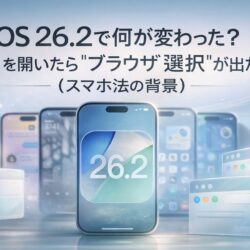 - iOS 26.2で何が変わった?|Safariを開いたら“ブラウザ選択”が出た理由(スマホ法の背景)